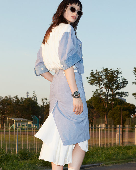 【set up item】half denim suits skirt / gray