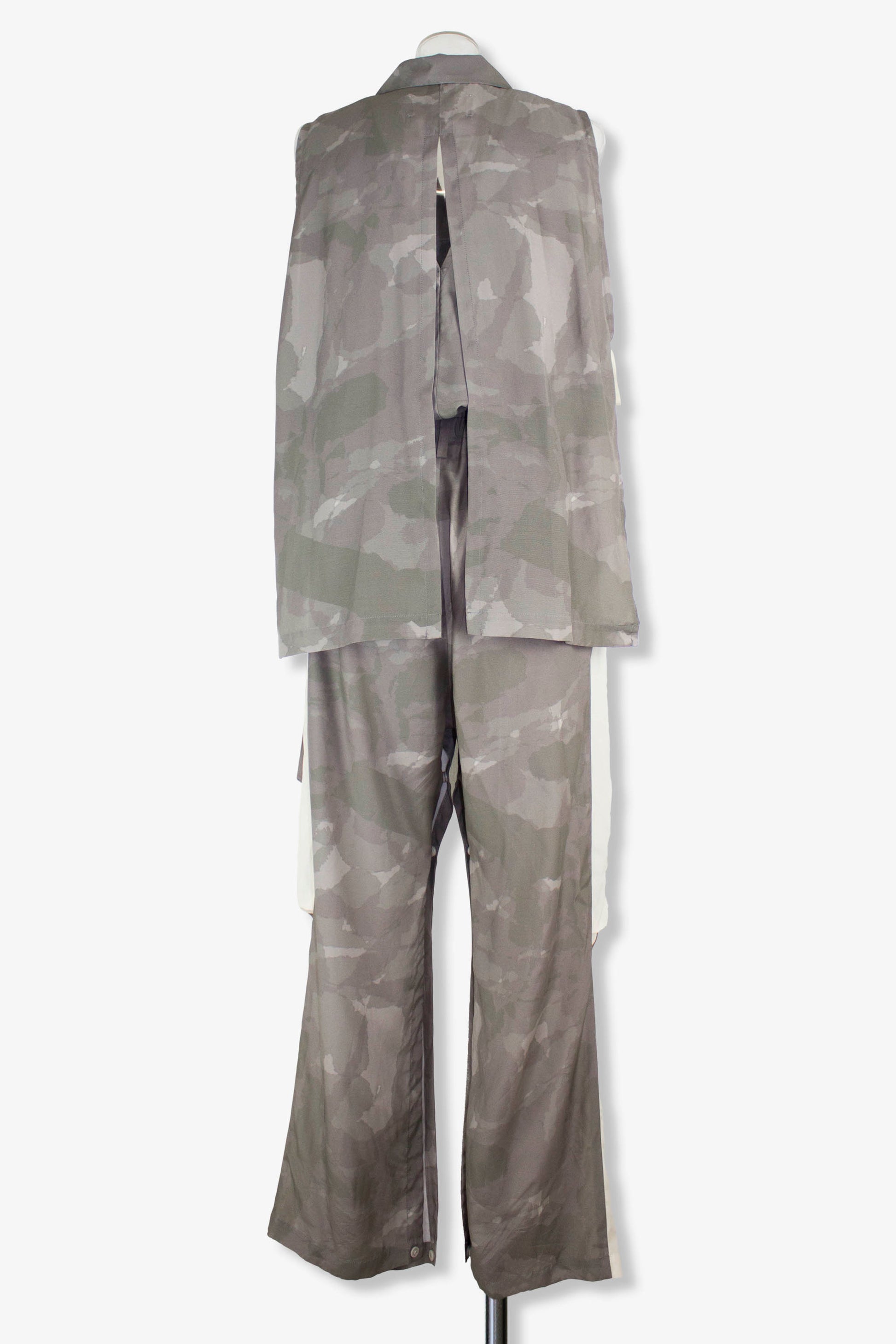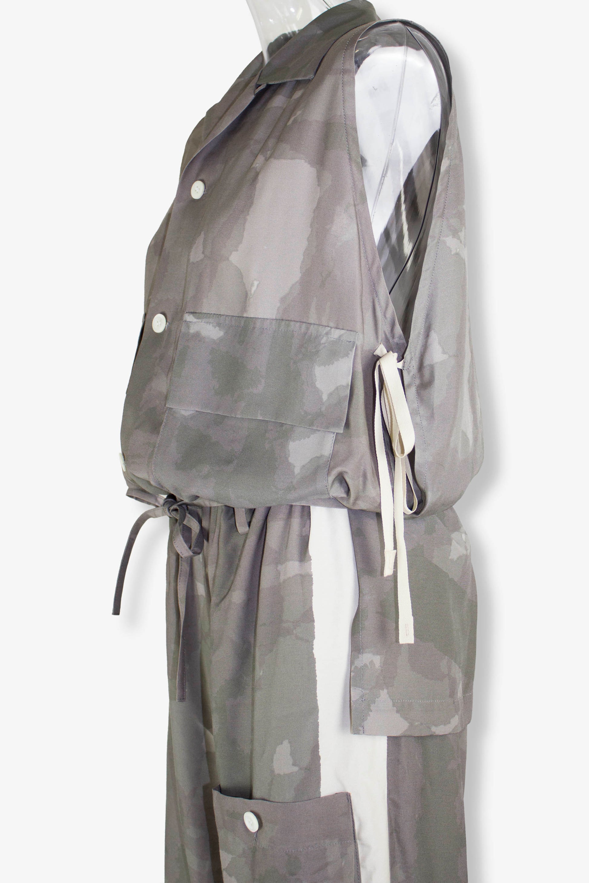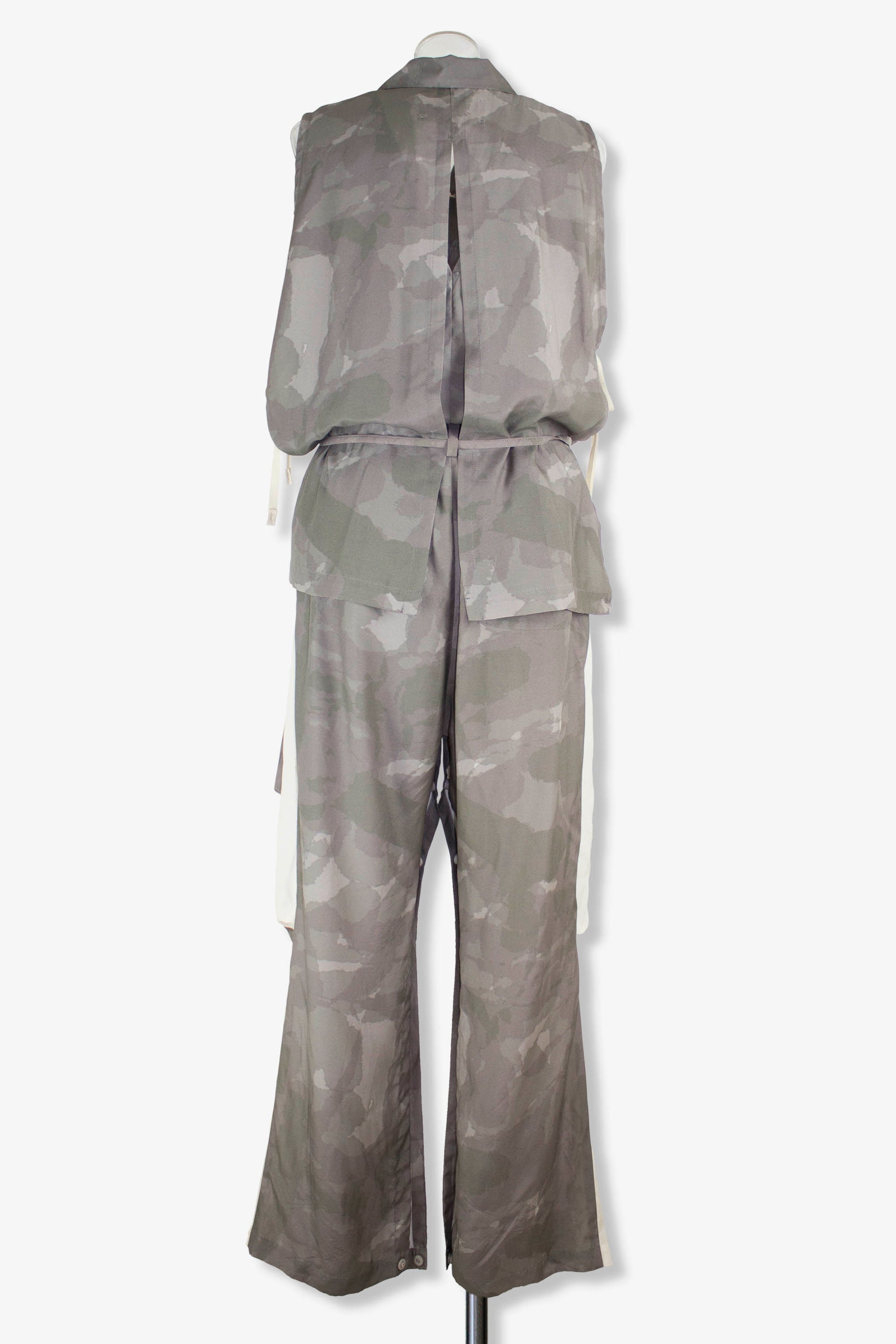 ・レーヨンアロハシャツの素材のジャンプスーツ。ミリタリーディティールを落とし込んだデザイン。