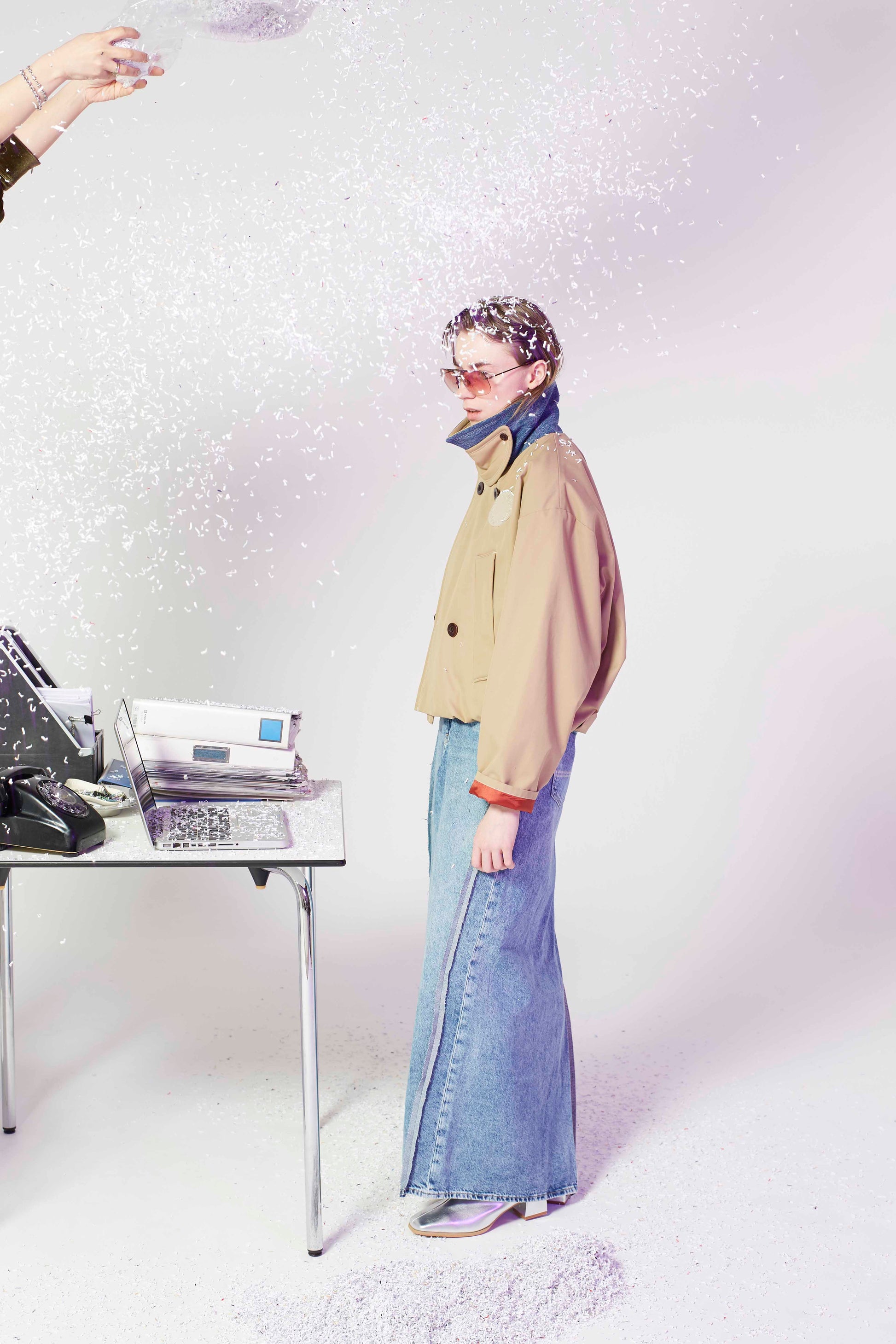 ・両脇のダーツで太いパンツのシルエットをタイトにしたしたデザイン。腰回りをすっきりと見せ、スタイルアップ効果を引き出します。ダーツと裾はあえて切りっぱなしに仕上げ、軽やかさとモードな抜け感をプラスしました。長めのレングスは、オーナー自身でカットオフして調整することで、自分だけの一着へと仕立てることができます。