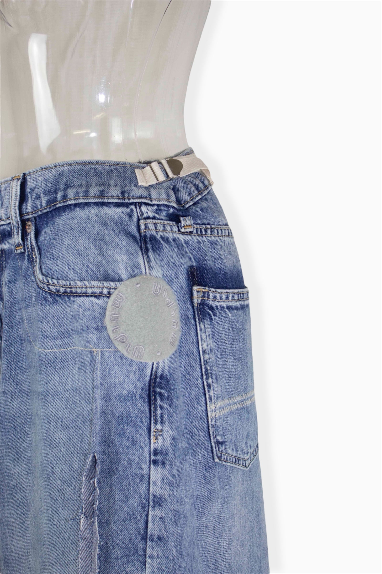 デニムのタフさとデザイン性が共存する、唯一無二のスカートをお楽しみください。